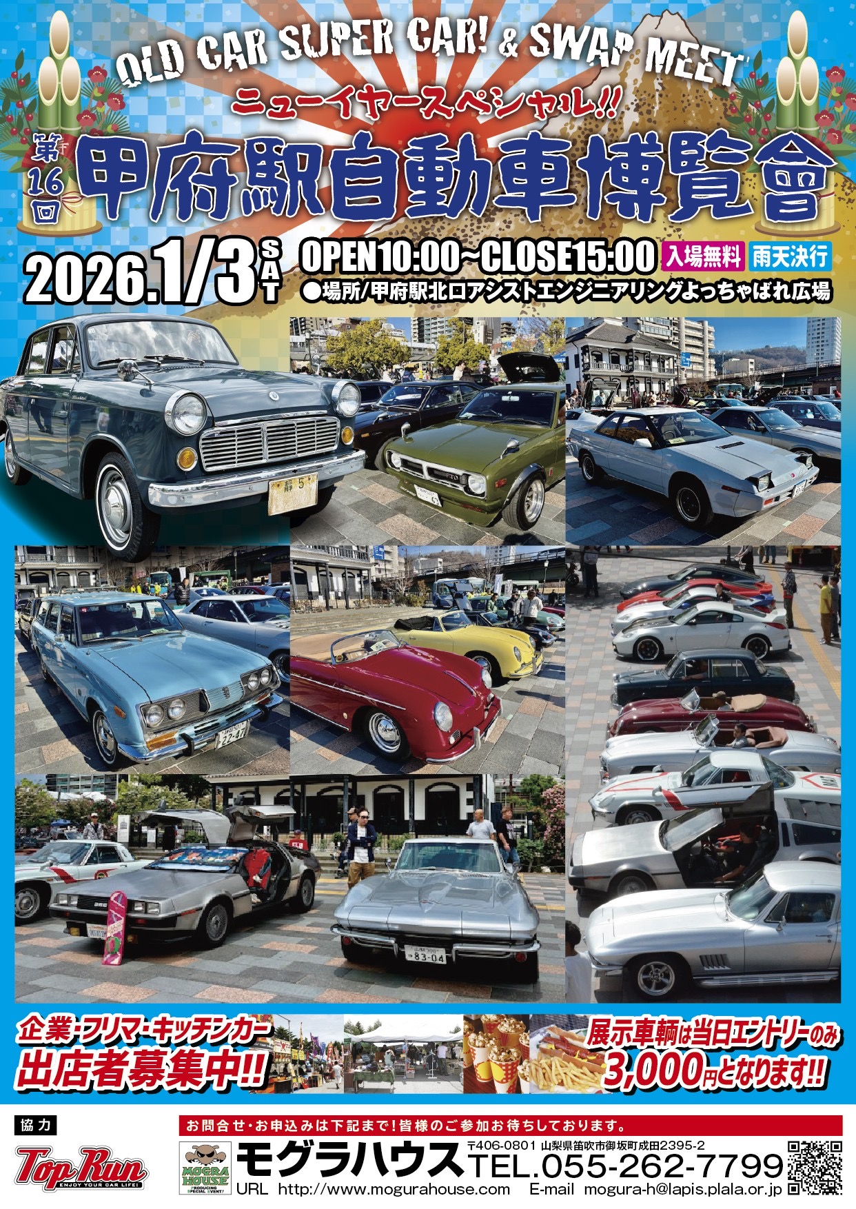 4輪・2輪の車両展示 名車紹介 トークショー フリーマーケット キッチンカーなど